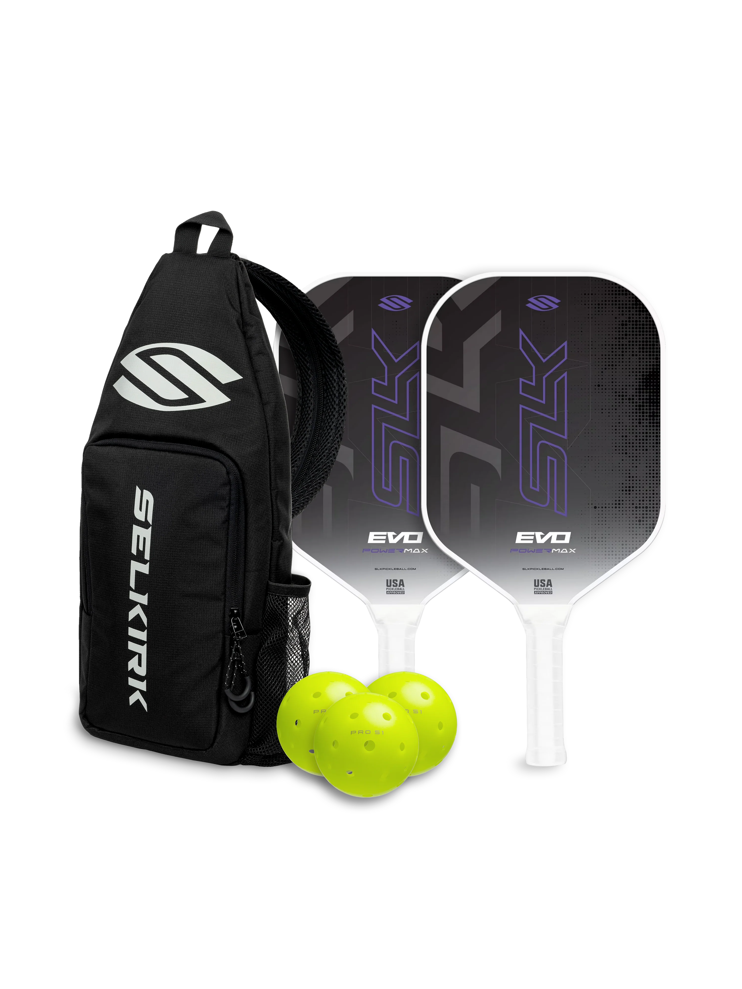 Crafted with the mission of championing the next generation of pickleball players, the Selkirk SLK EVO 2.0 Max pickleball paddle is available in three performance options and delivers exceptional performance through innovation, design, and unmatched value. USAPA-approved.